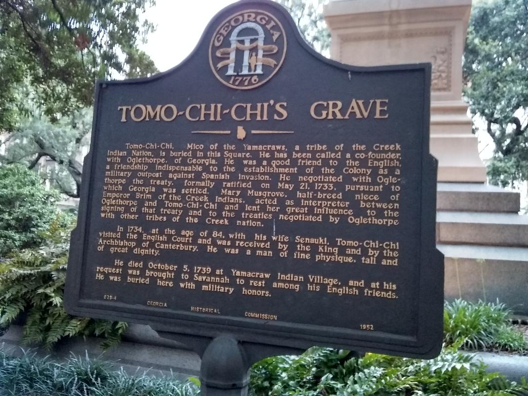 Savannah is a city of small parks known as squares. A captivating one was a tribute to an Indian Chief, Tomo Chi-Chi. In the square is his grave.