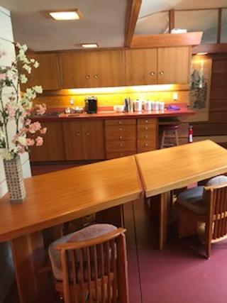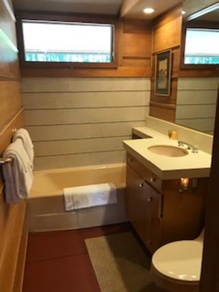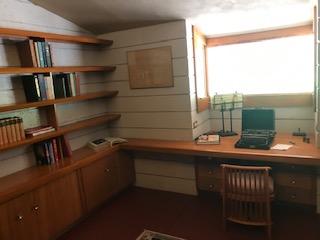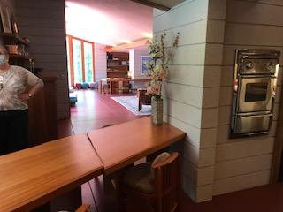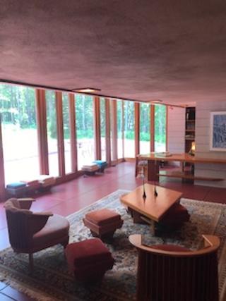 The tour began at the Treetops Restaurant. Besides the ticket office for the venue this building houses a restaurant with an exquisite dining experience. Food is tasty and the setting bewitching. The owner has crafted unique pod settings for dining enjoyment and even the bathrooms have a FLW design with falling water faucets.