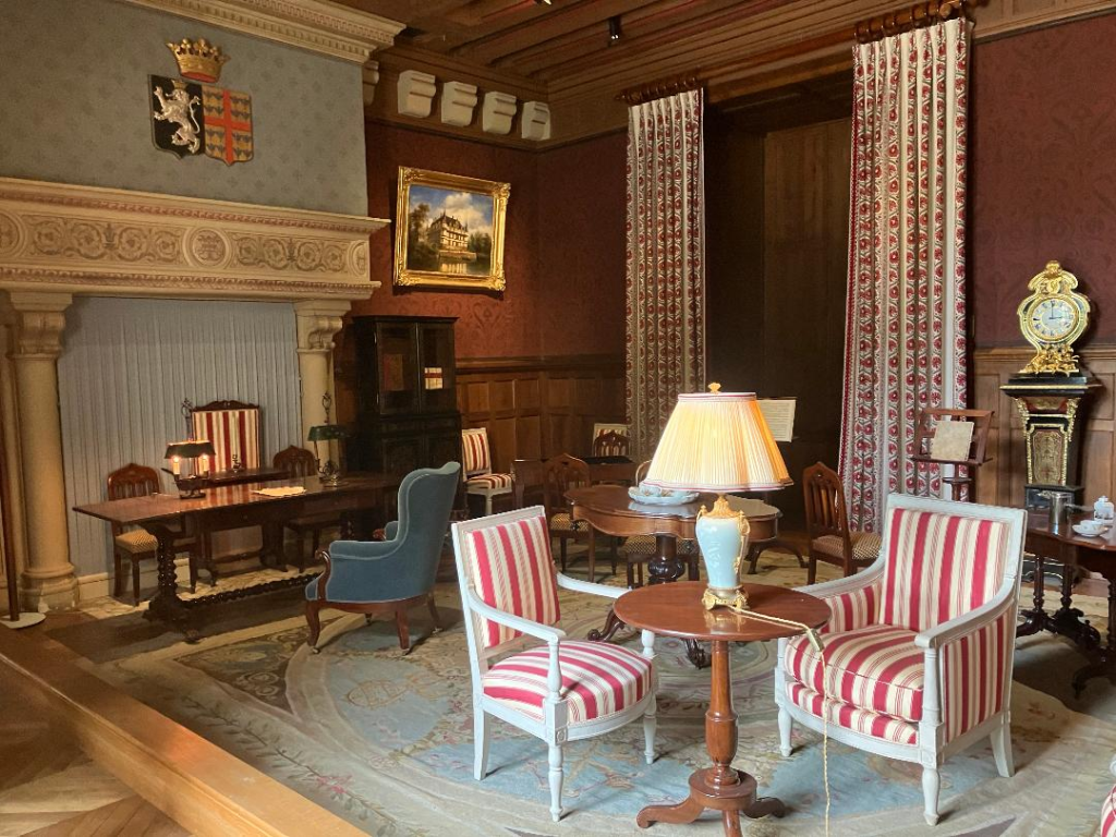 While the Castle reigns from the 16th century when the government acquired it in 1905 it was essentially bare. It has been restored to the 19th century in some rooms as shown, and other rooms remain sparsely furnished as the castle was in the 16th century. Most of the castle furnishings were acquired through museum donations.