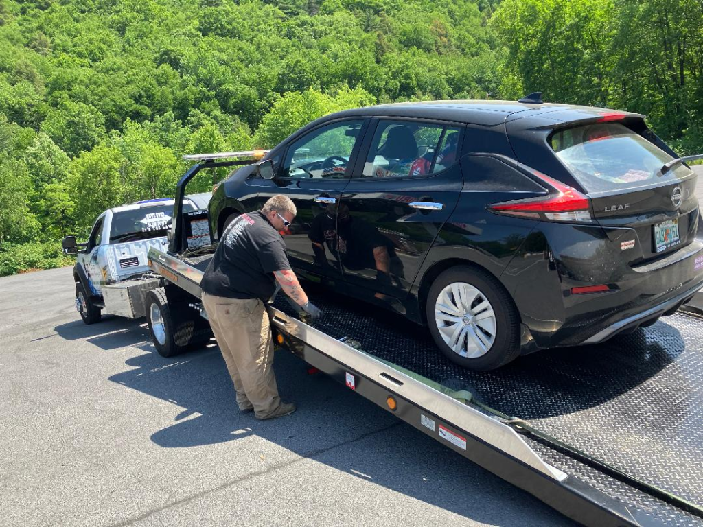 Investigating further I found a spot 50 miles down the road in the appropriate direction which had a fast charger. I made arrangements with a tow company and they lowered their rates from $400 to $250 for the service. Nice touch. Had called my AAA but they only cover a 3 mile tow – what a waste of an annual fee. I guess AAA only is good for Disney tickets and even that I can find cheaper than AAA.