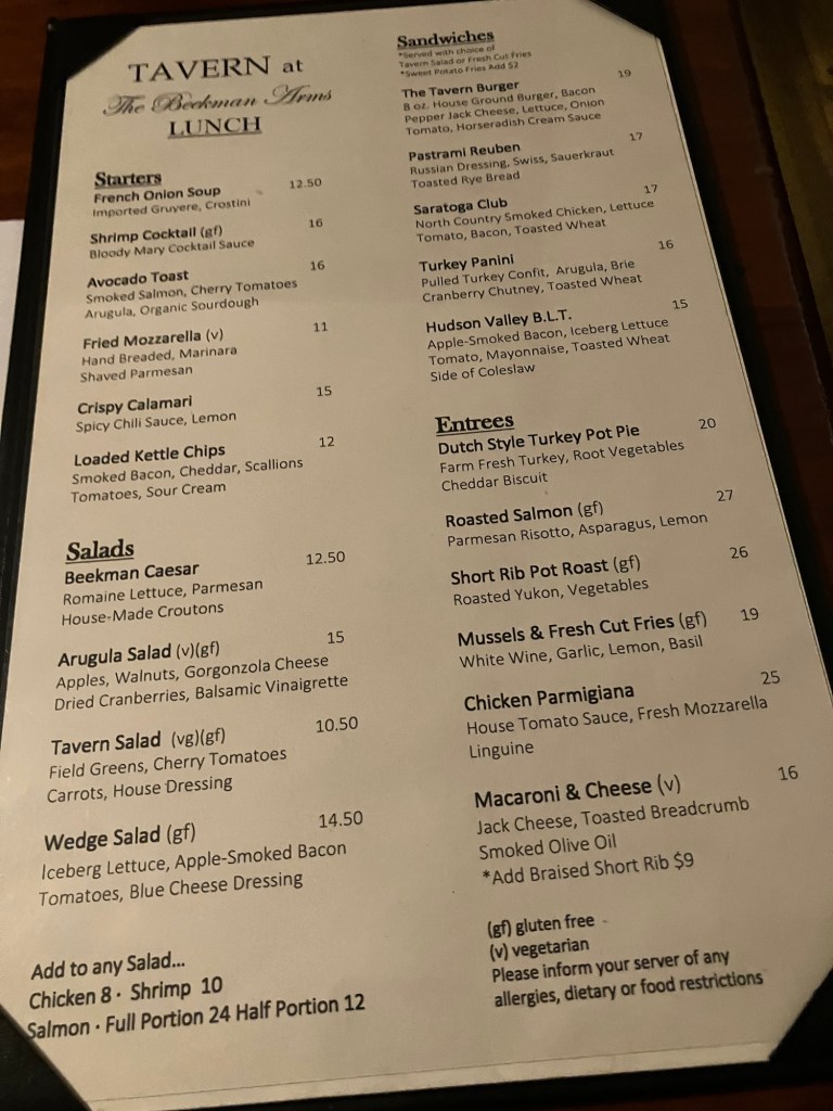 Stopped in Rhinebeck on my way to other destinations. Ate at the famous Beekman Arms where George Washington was known to have stayed. The lunch was delicious and reasonably priced.