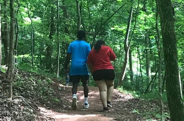 The path has many twists and turns. Place small colored items at these junctures to ensure you find your way back to the parking lot. And of course pick them up upon return.