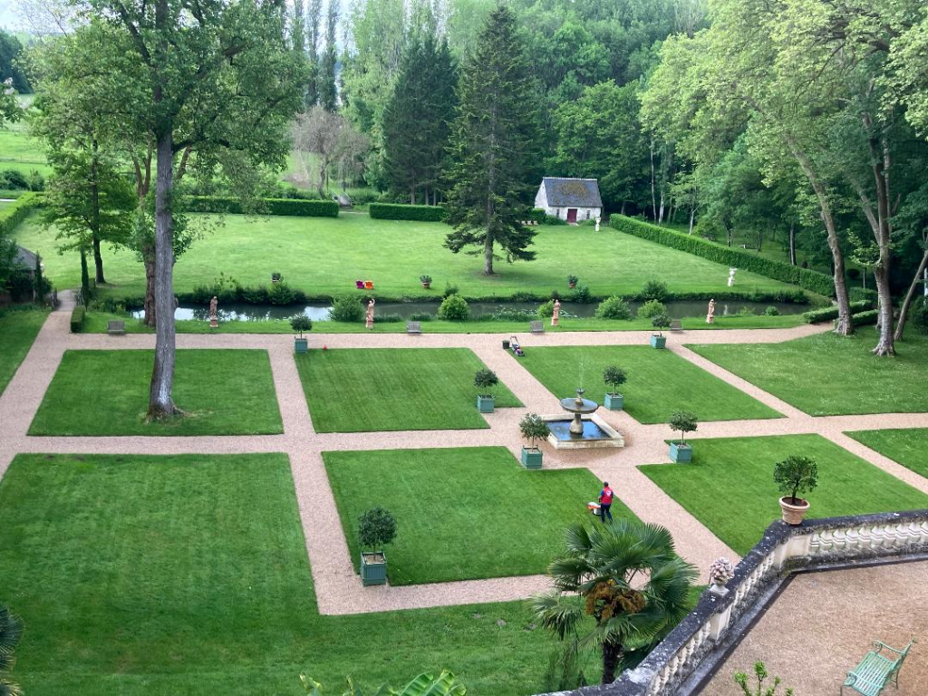 The grounds of this restaurant prepared for a wedding.
